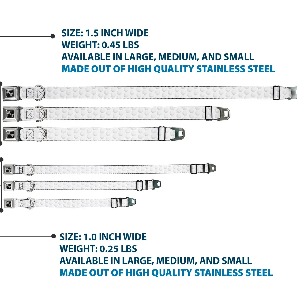 Dog Bone Black/Silver Seatbelt Buckle Collar – Golf Ball Dimples Whites