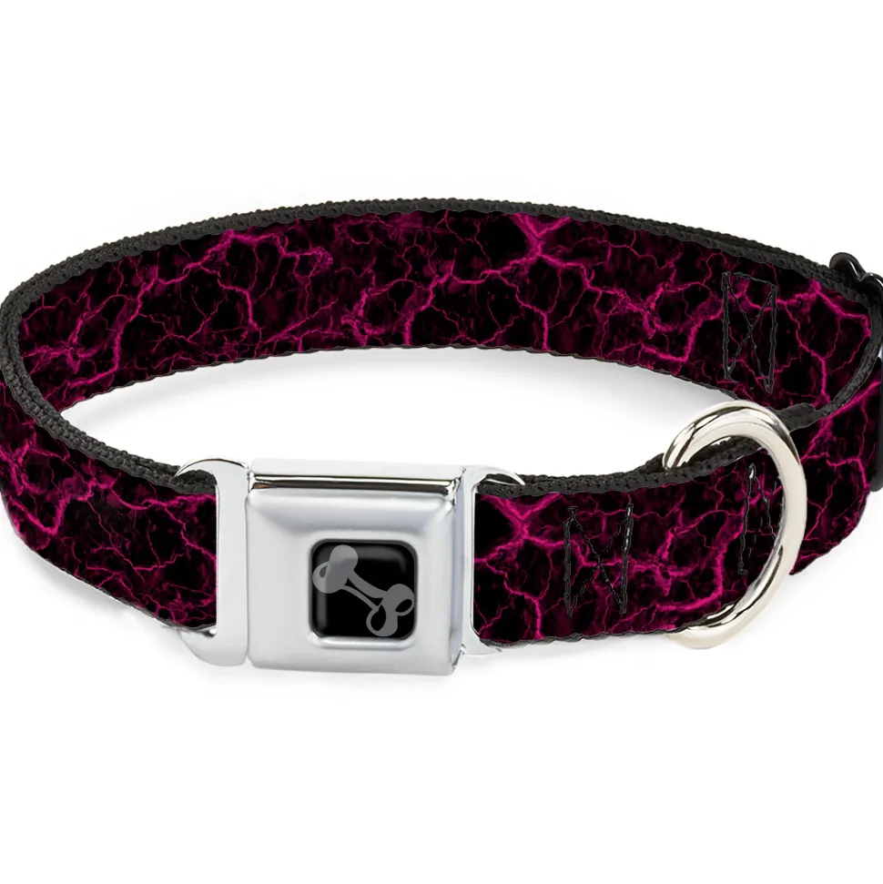 Dog Bone Black/Silver Seatbelt Buckle Collar – Marble Black/Hot Pink