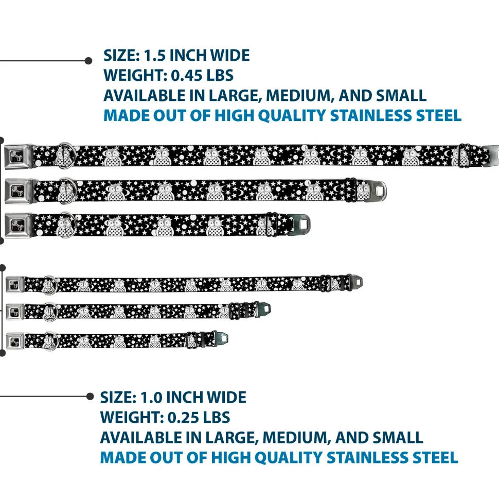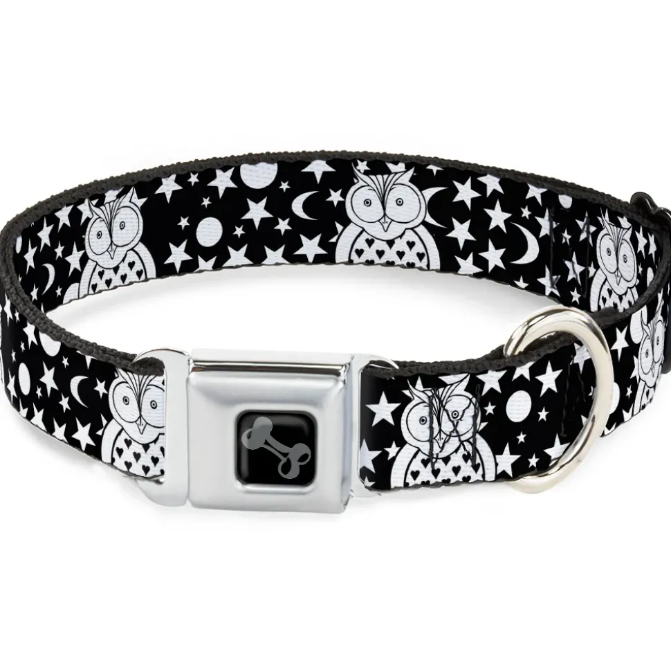 Dog Bone Black/Silver Seatbelt Buckle Collar – Owls Black/White2