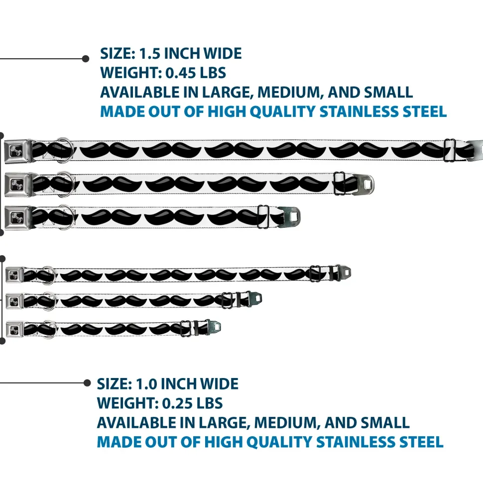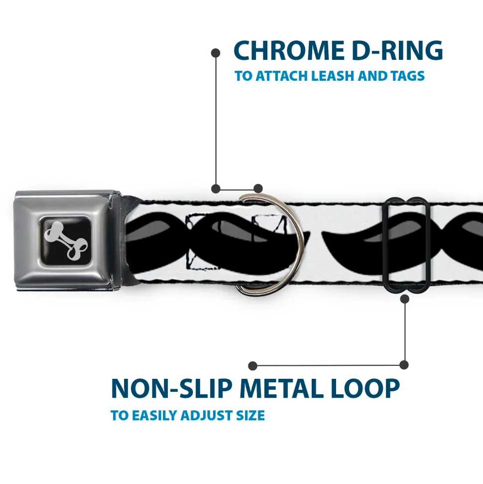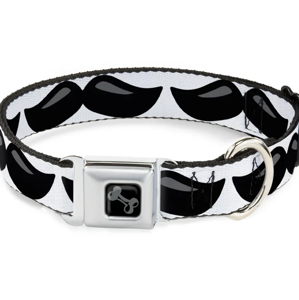 Dog Bone Black/Silver Seatbelt Buckle Collar – Plastic Mustache White/Black