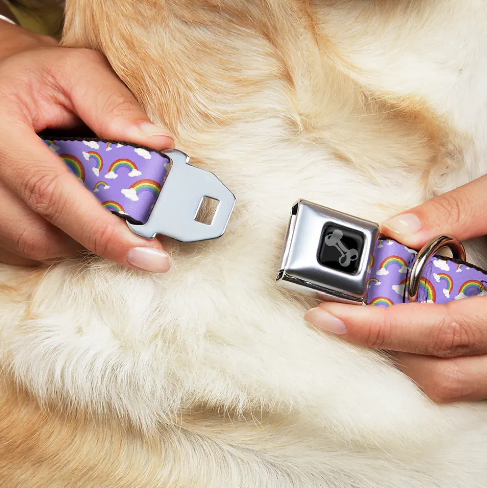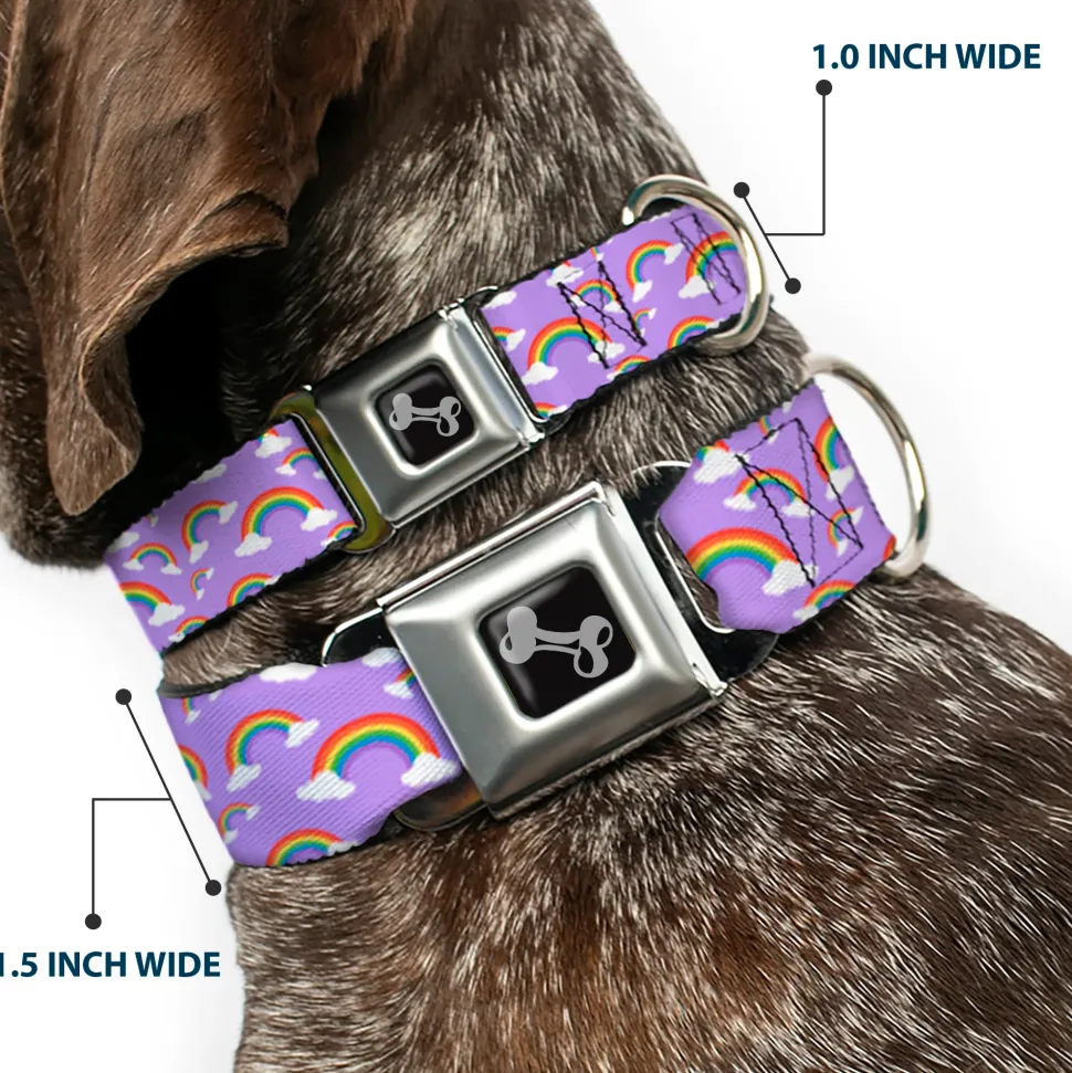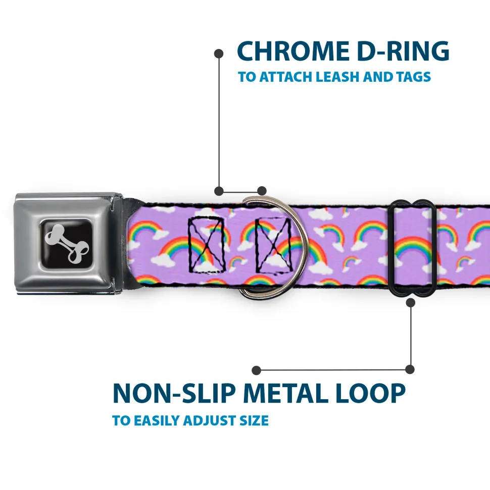 Dog Bone Black/Silver Seatbelt Buckle Collar – Rainbows Scattered Lavender