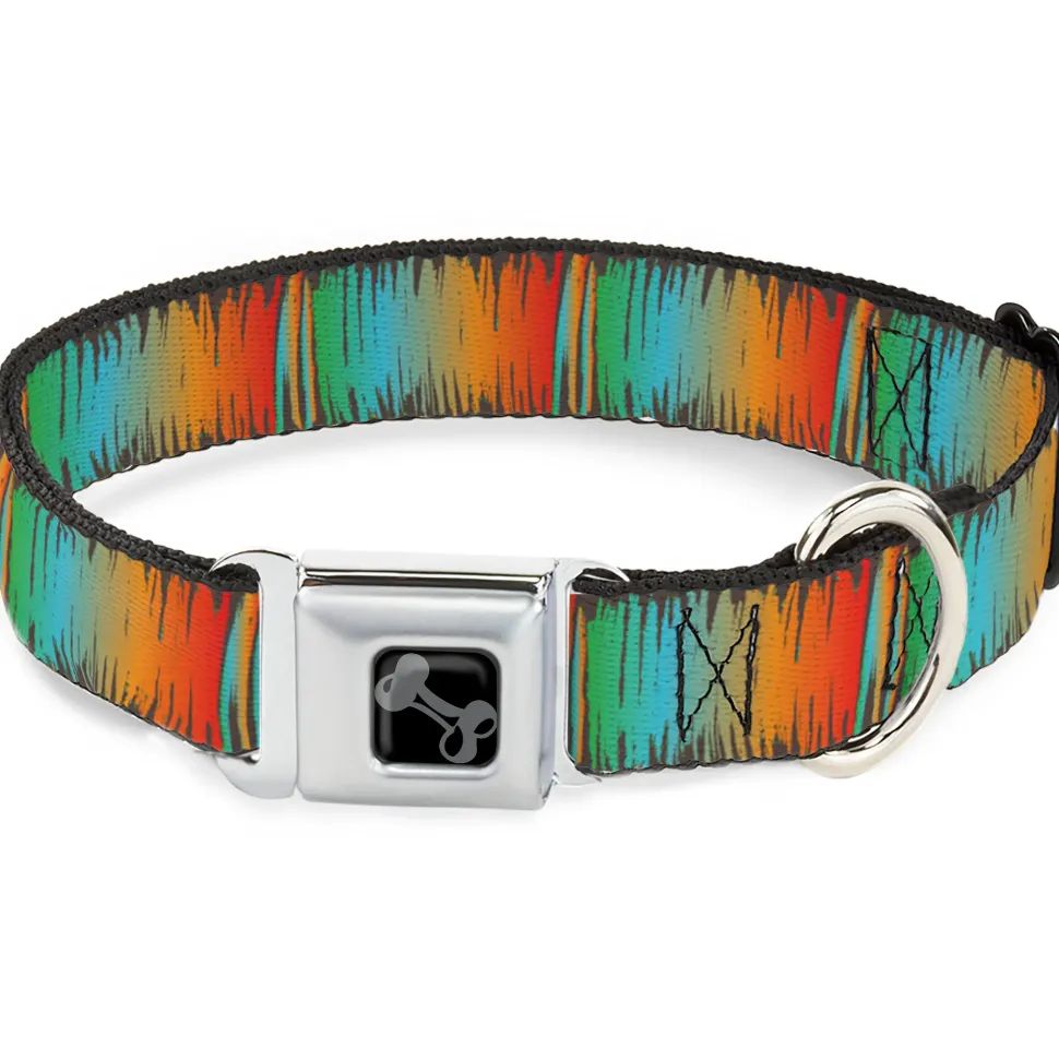 Dog Bone Black/Silver Seatbelt Buckle Collar – Scribble Zarape Fade Brown/Multi Color