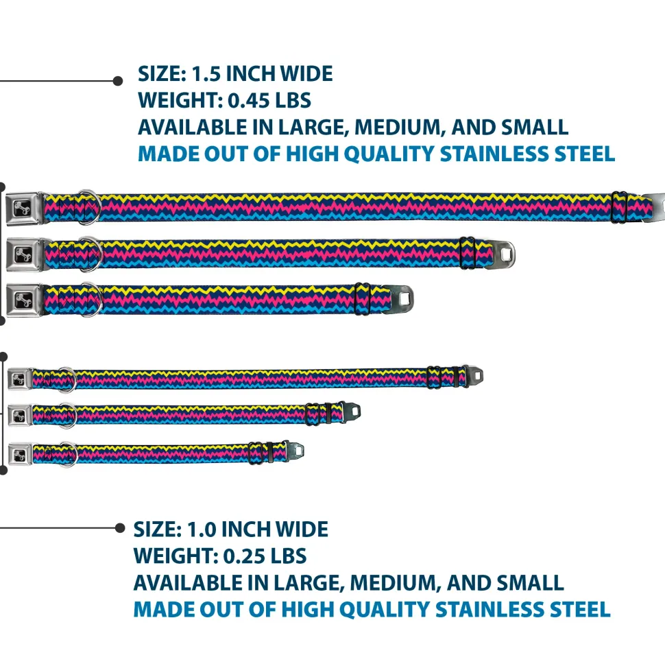 Dog Bone Black/Silver Seatbelt Buckle Collar – Scribble Zig Zag Stripe Navy/Multi Color
