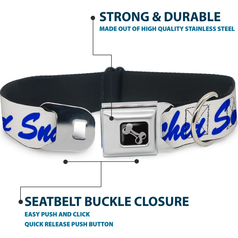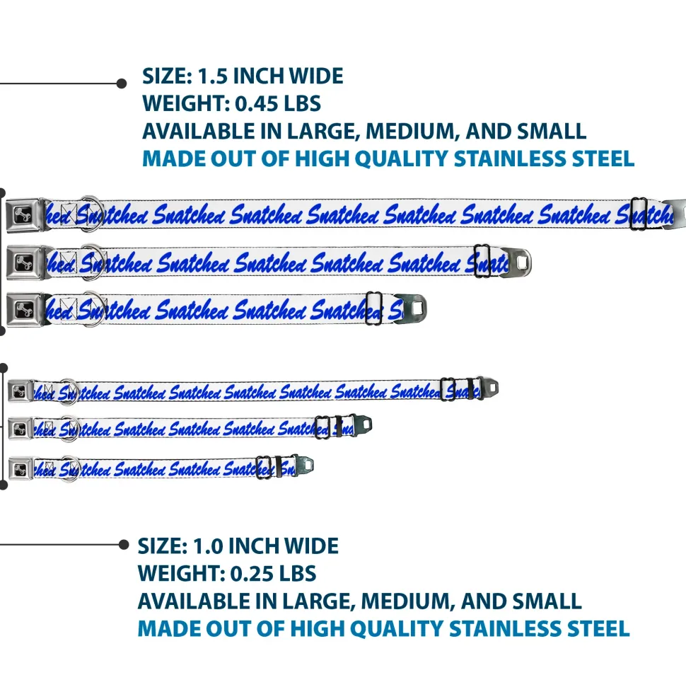 Dog Bone Black/Silver Seatbelt Buckle Collar – SNATCHED Script White/Blue