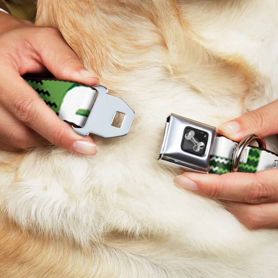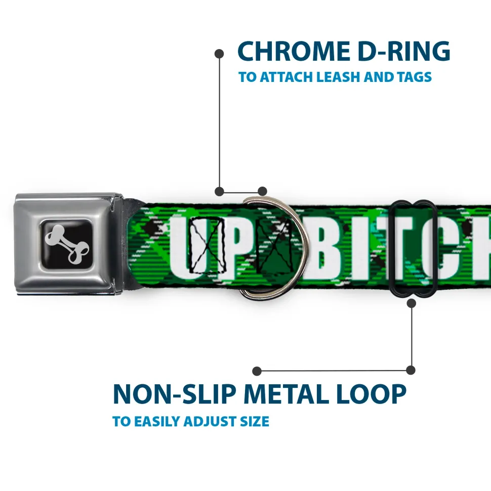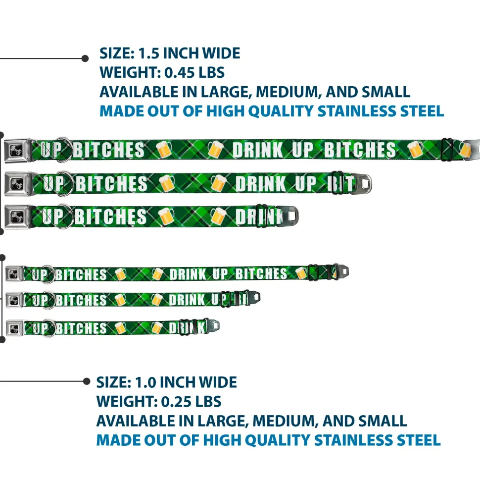 Dog Bone Black/Silver Seatbelt Buckle Collar – St. Pat's DRINK UP BITCHES/Beer Mugs/Stacked Shamrocks Greens/White/Gold