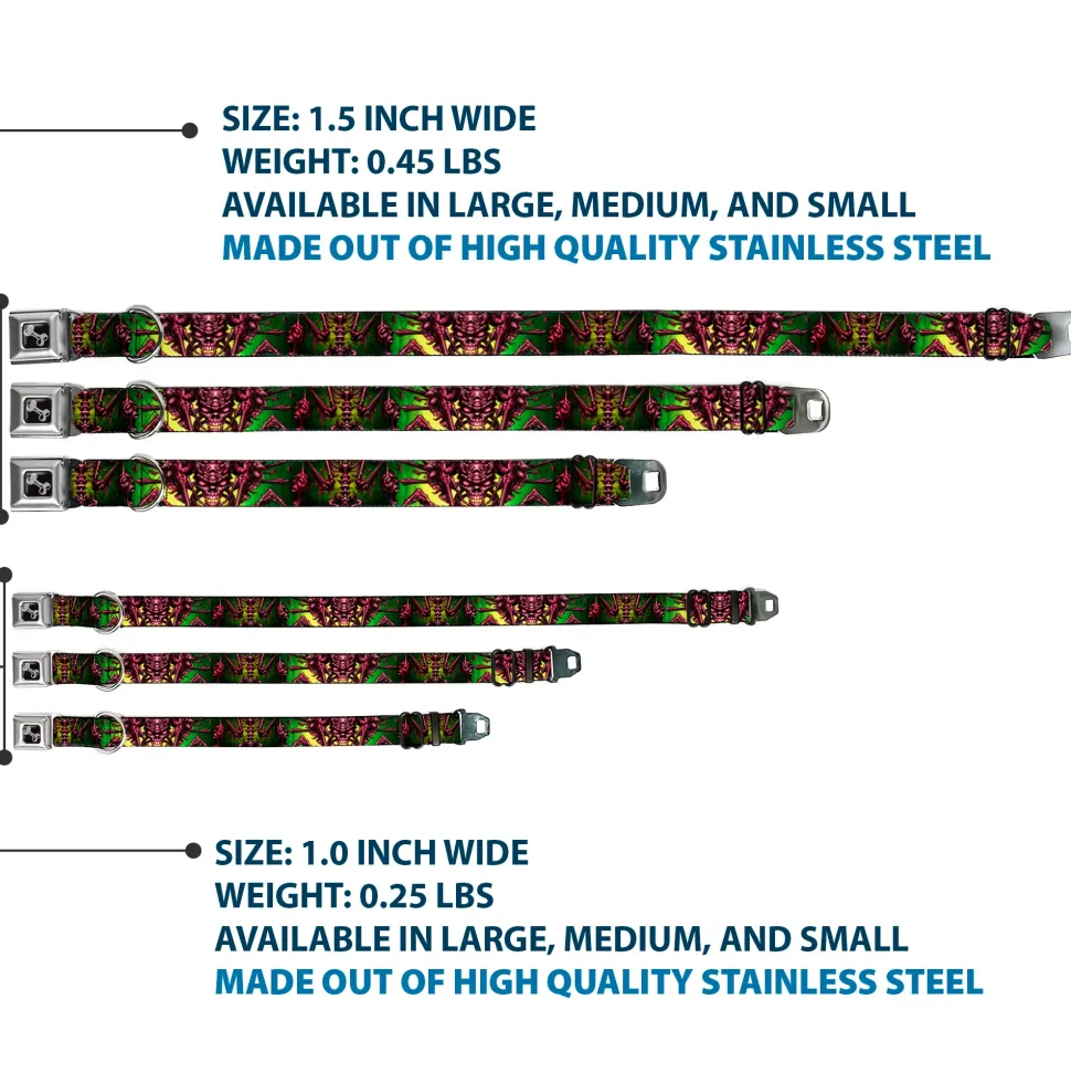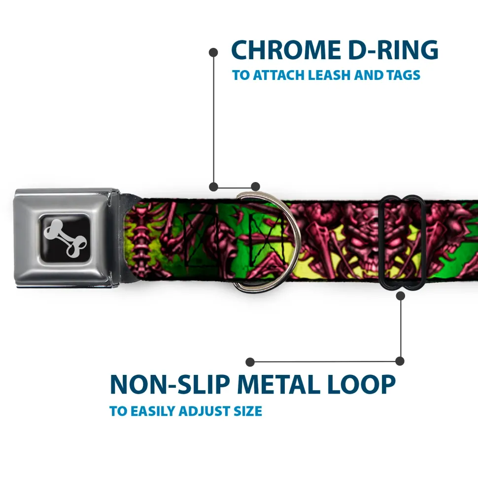 Your dog will be the talk of the town when people notice they’re wearing this awesome SeatBelt Dog Collar! Made from high-density polyester and durable steel components, this collar is built to last. It features beautiful vibrant artwork. The buckle is a miniature authentic SeatBelt Buckle, so you press the center button to release the clasp. This product is Made in USA by Buckle-Down Inc. and officially Licensed by Tattoo Johnny.