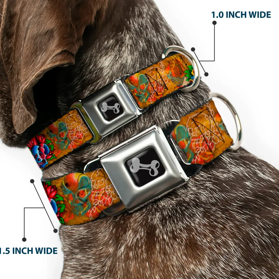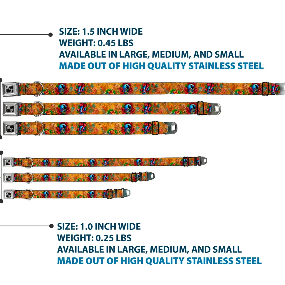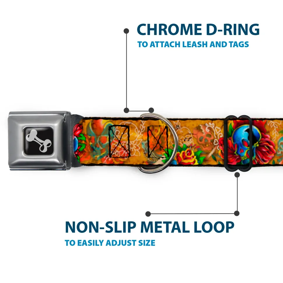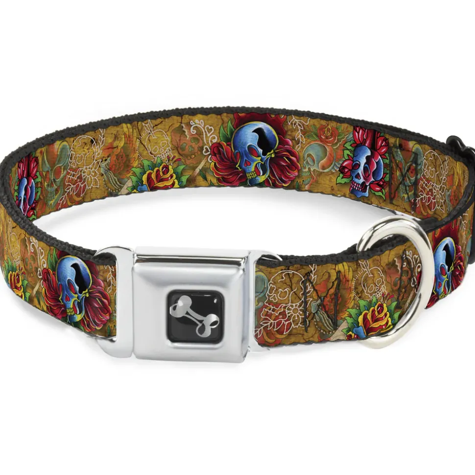 Your dog will be the talk of the town when people notice they’re wearing this awesome SeatBelt Dog Collar! Made from high-density polyester and durable steel components, this collar is built to last. It features beautiful vibrant artwork. The buckle is a miniature authentic SeatBelt Buckle, so you press the center button to release the clasp. This product is Made in USA by Buckle-Down Inc. and officially Licensed by Tattoo Johnny.