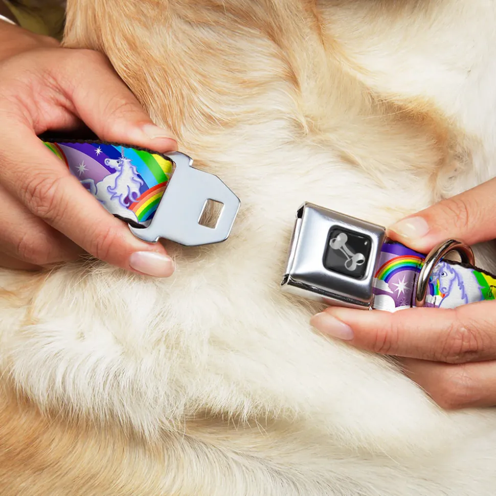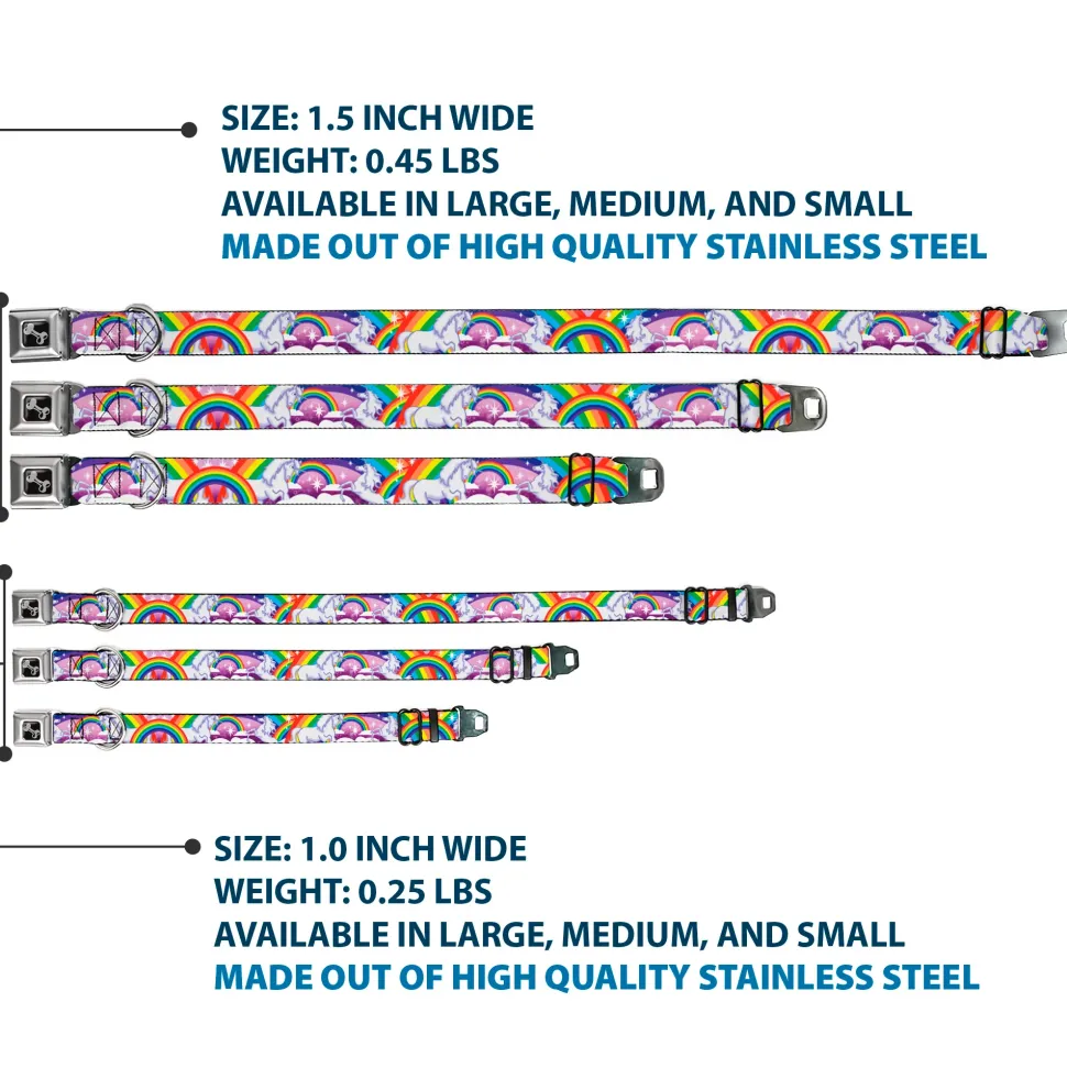 Your dog will be the talk of the town when people notice they’re wearing this awesome SeatBelt Dog Collar! Made from high-density polyester and durable steel components, this collar is built to last. It features beautiful vibrant artwork. The buckle is a miniature authentic SeatBelt Buckle, so you press the center button to release the clasp. This product is Made in USA by Buckle-Down Inc. and officially licensed by Buckle-Down.