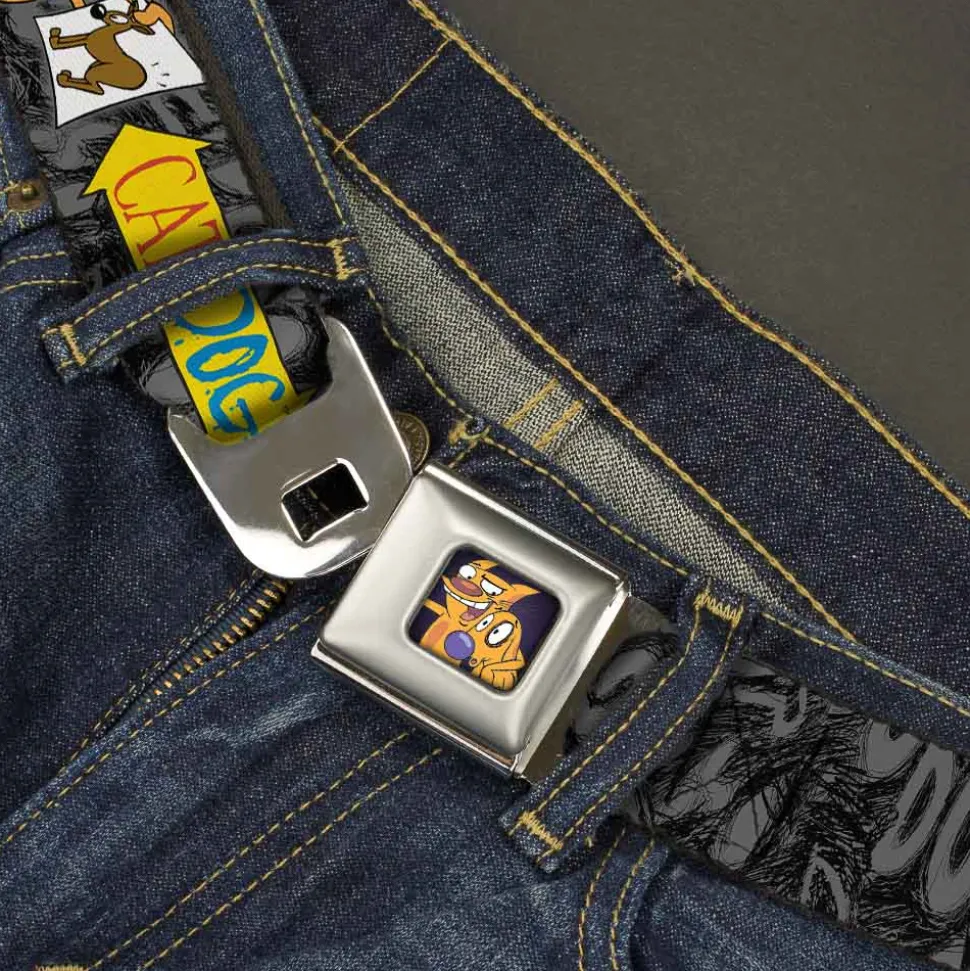 Dog & Cat Pose Full Color Seatbelt Belt – CatDog Party/Balloons/CATDOG Logo Gray/Black/Multi Color Webbing