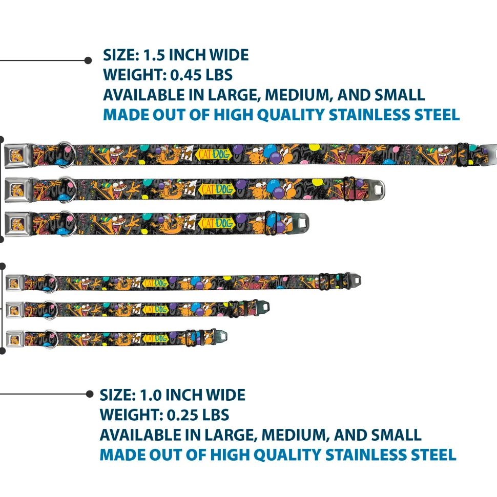 Dog & Cat Pose Full Color Seatbelt Buckle Collar – CatDog Party/Balloons/CATDOG Logo Gray/Black/Multi Color