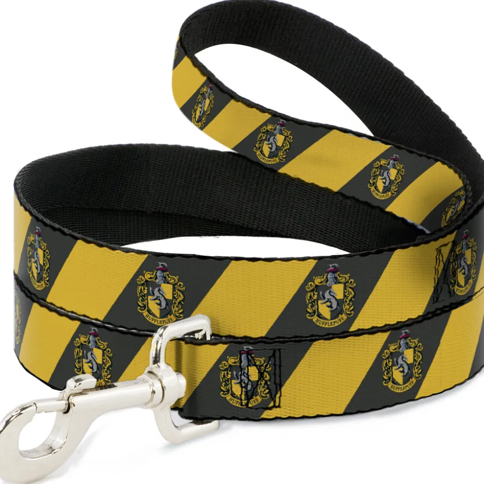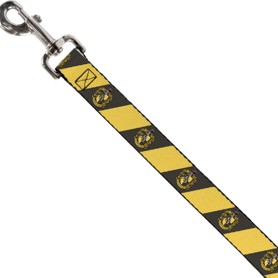 Dog Leash – HUFFLEPUFF Crest Diagonal Stripe Charcoal Gray/Yellow