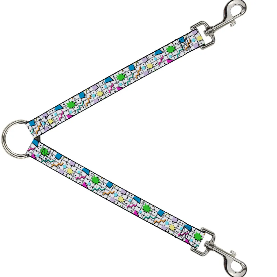Dog Leash Splitter – 90s Nineties Grid Pattern Vibrant Gray Multi Color