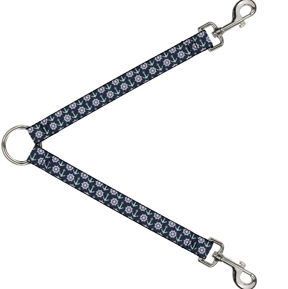 Dog Leash Splitter - Anchor2/Helm Monogram Navy/Turquoise/White