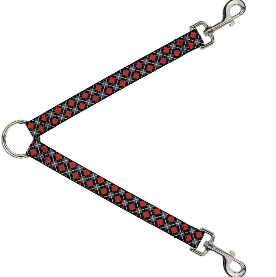 Dog Leash Splitter - Argyle Black/Gray/Red