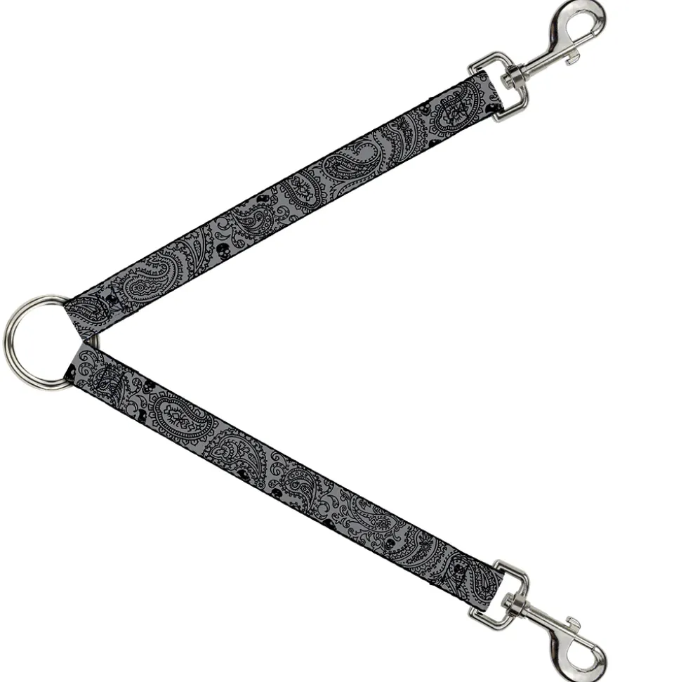 Dog Leash Splitter - Bandana/Skulls Silver/Black