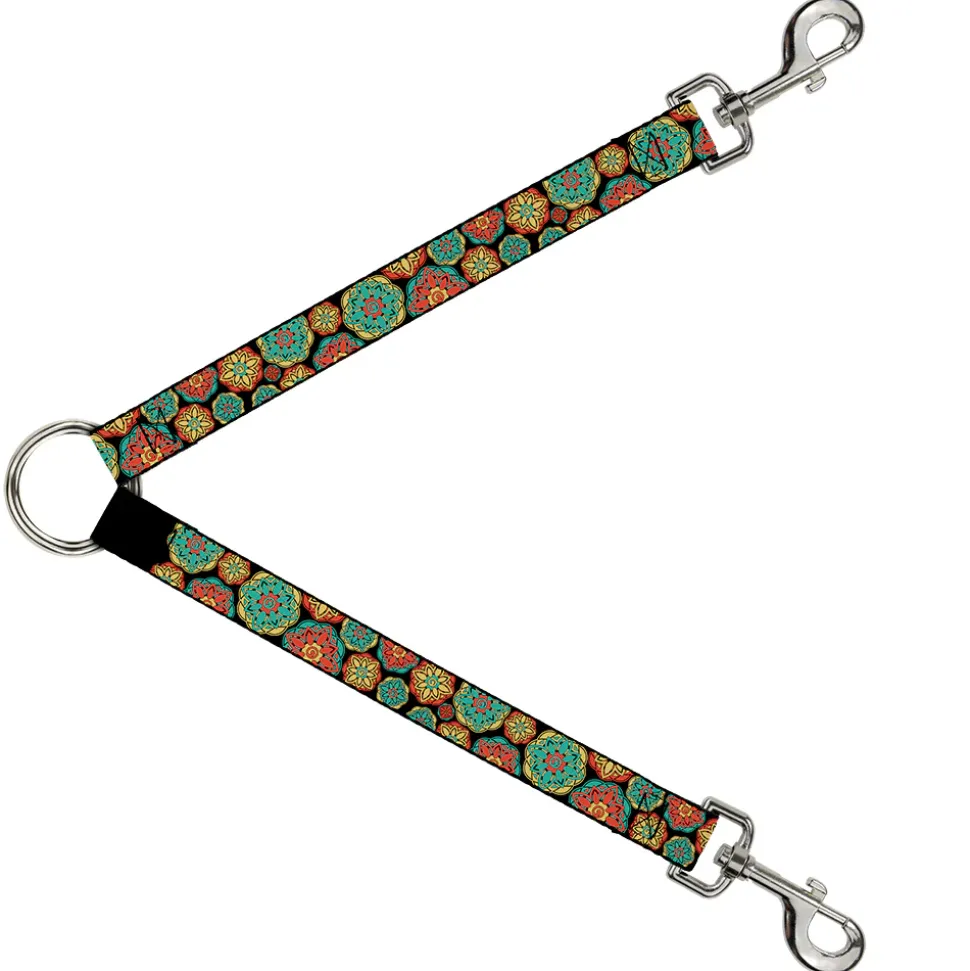 Dog Leash Splitter - Boho Mandala Black/Yellow/Turquoise/Orange