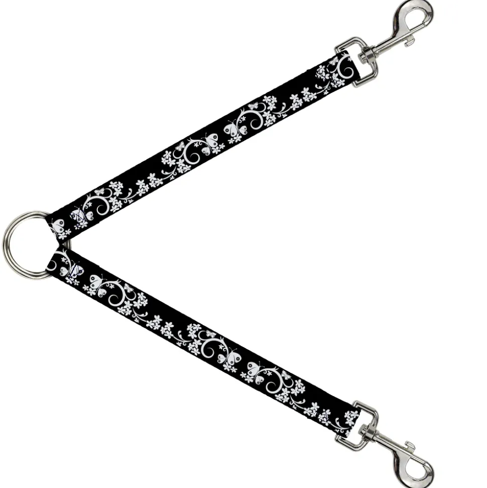 Dog Leash Splitter – Butterfly Garden 2 Black/White