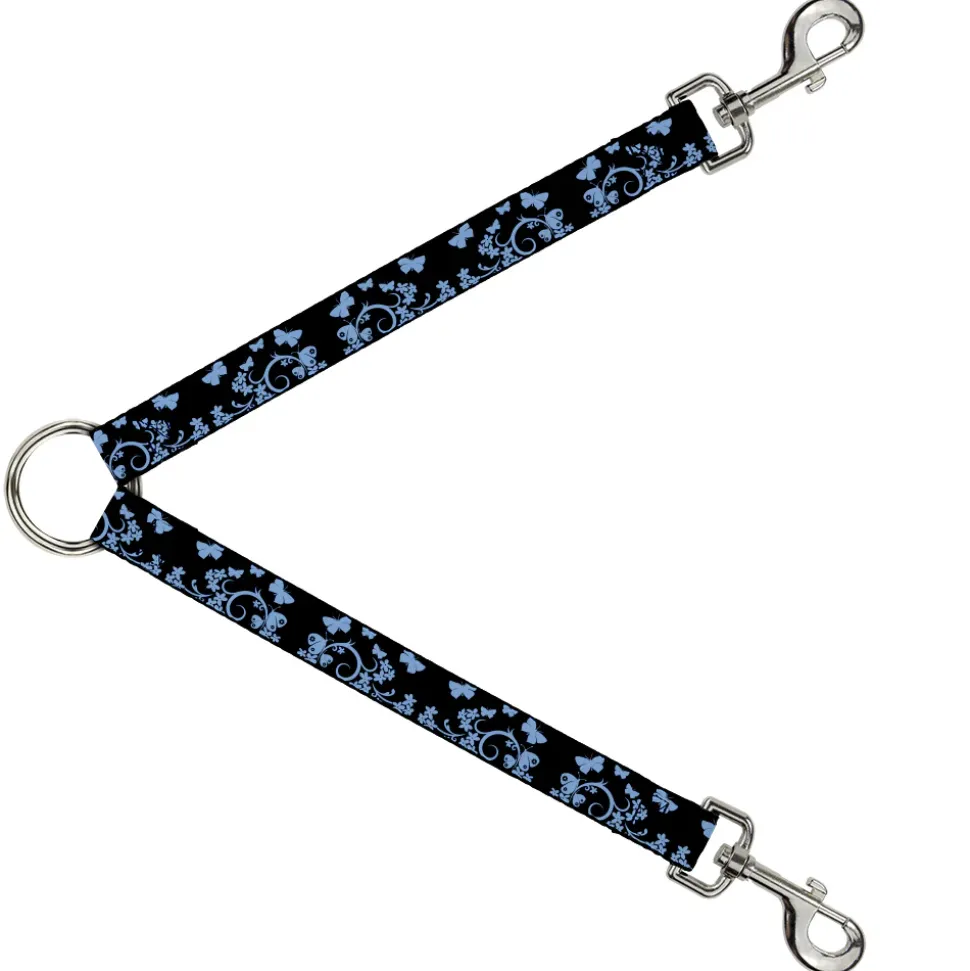Dog Leash Splitter - Butterfly Garden Black/Blue