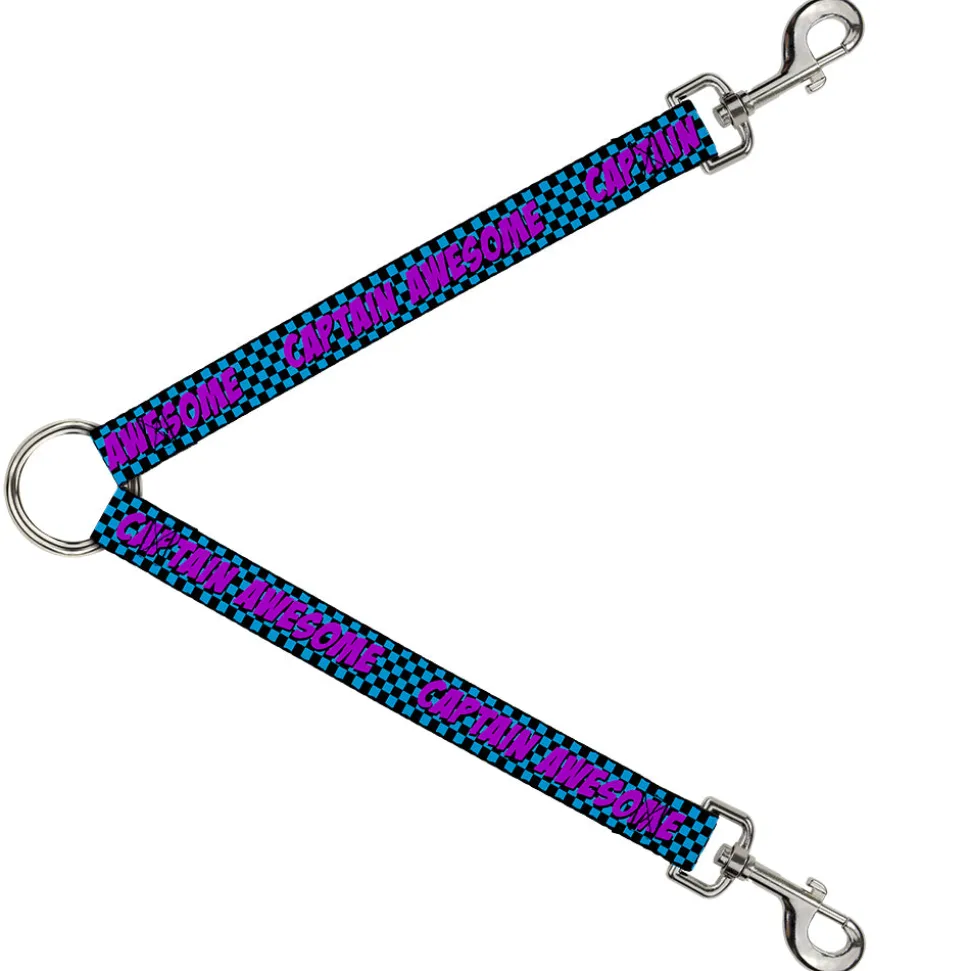 Dog Leash Splitter – CAPTAIN AWESOME Turquoise Checker/Fuchsia