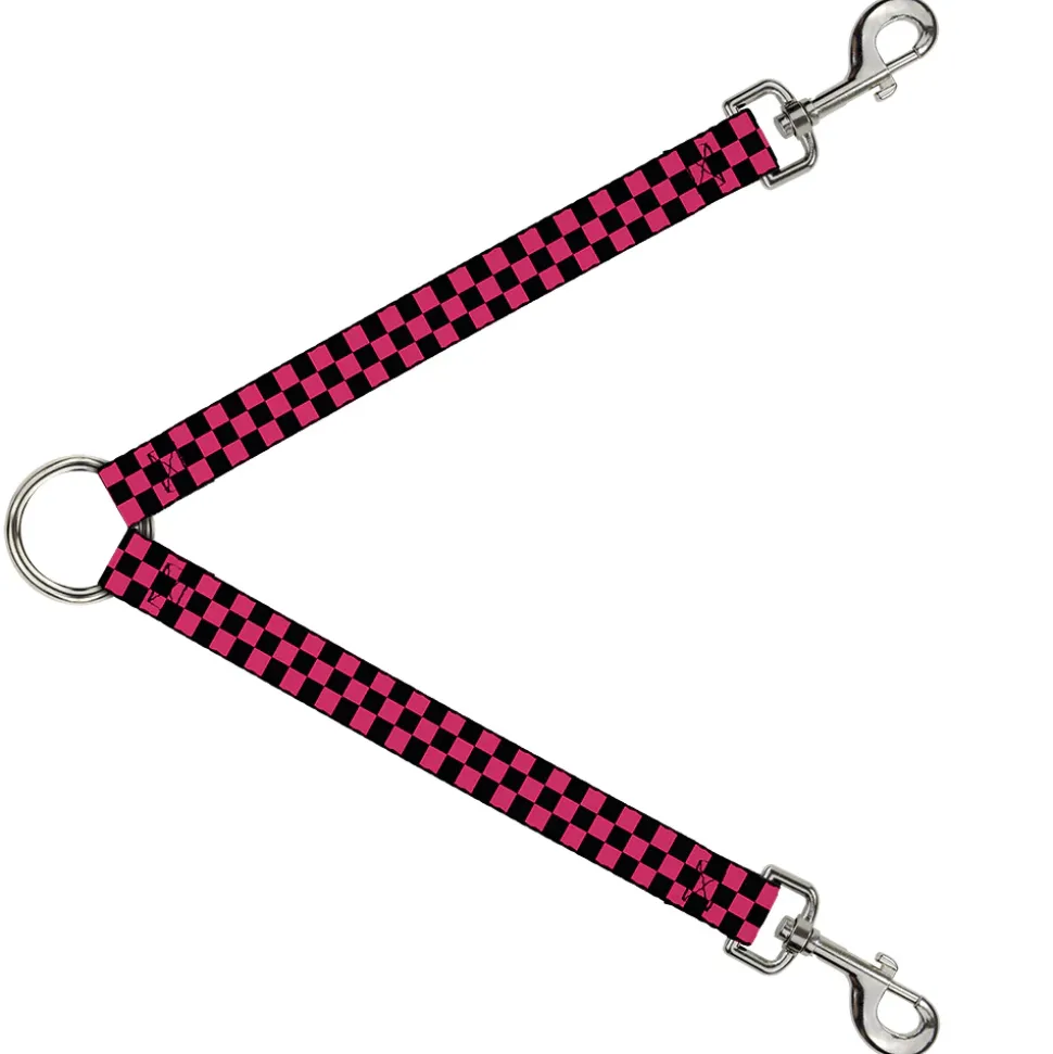 Dog Leash Splitter – Checker Black/Honeysuckle Red
