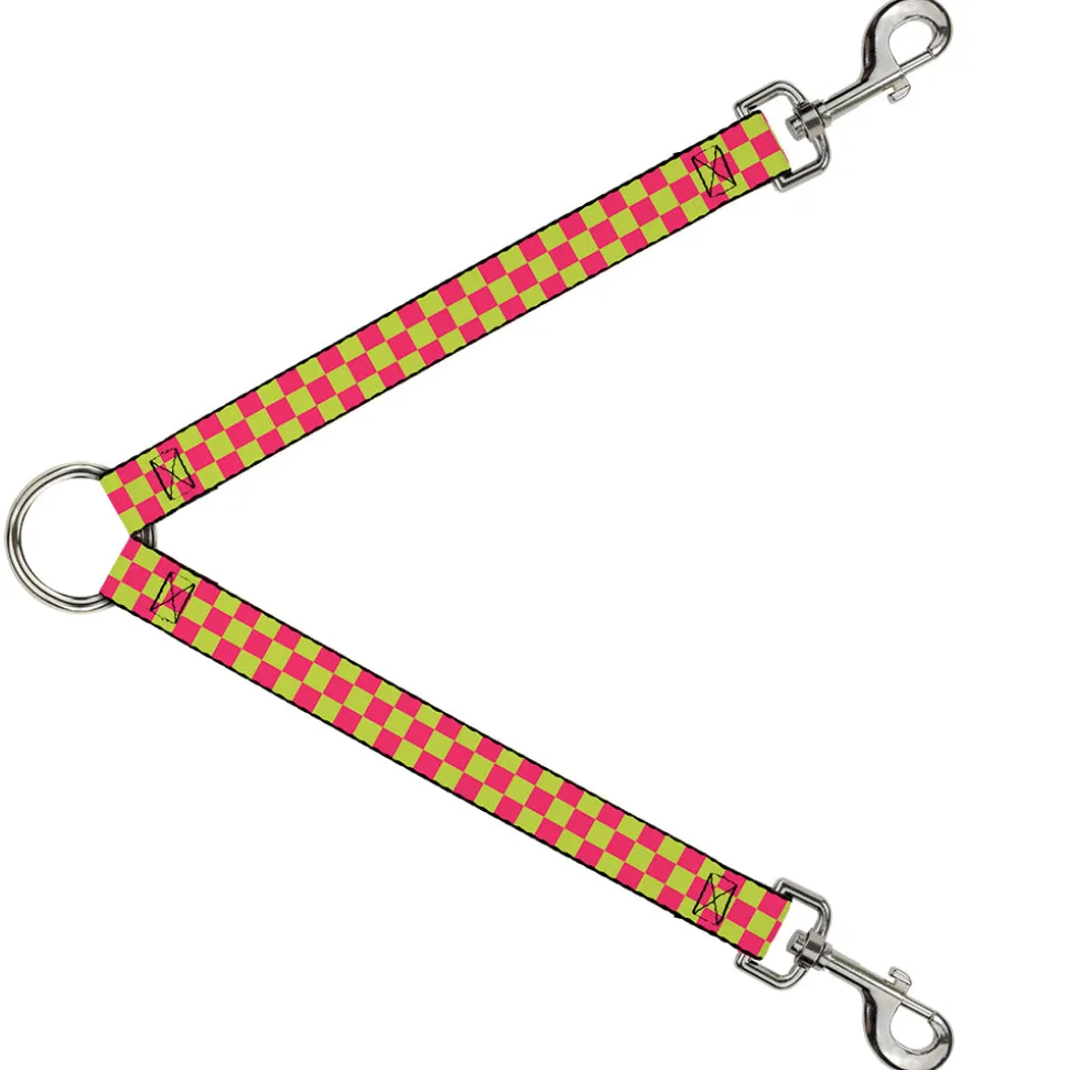 Dog Leash Splitter - Checker Fluoresecent Pink/Yellow