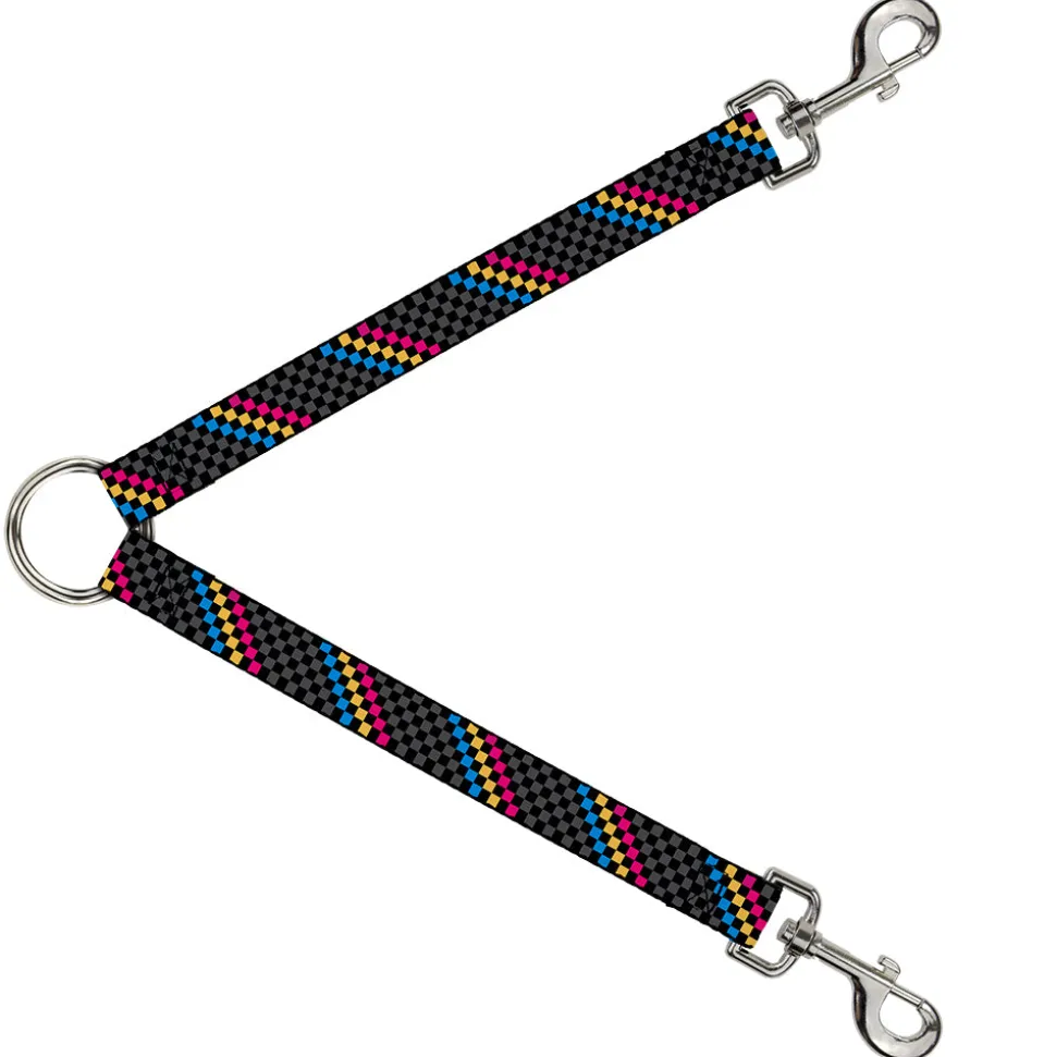 Dog Leash Splitter - Checker Stripe Black/Gray/Blue/Gold/Pink