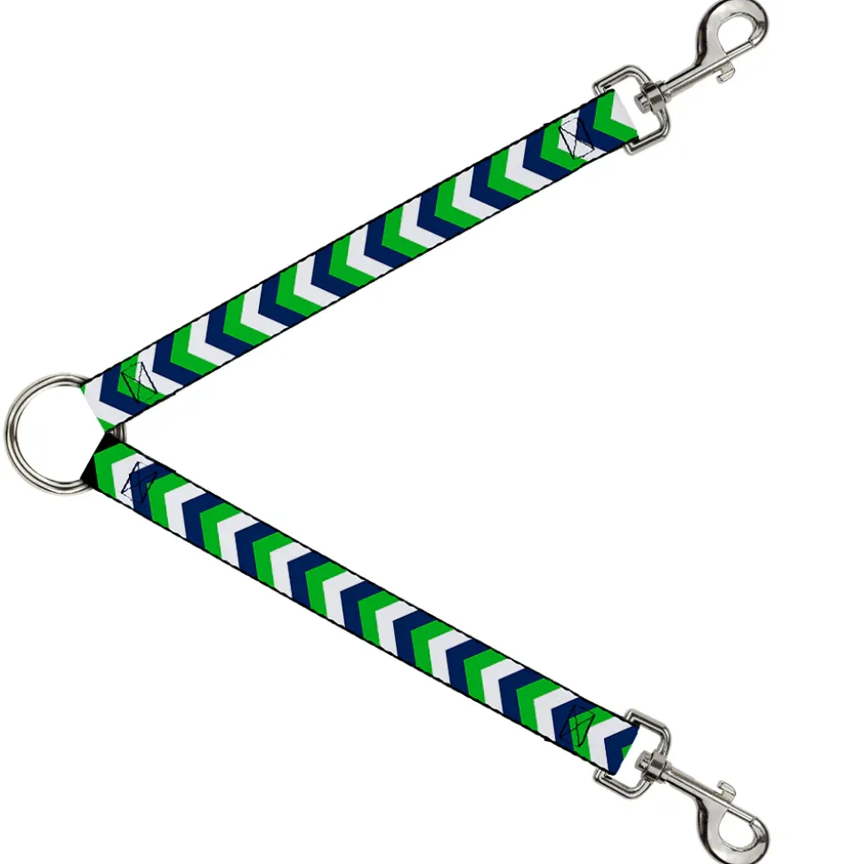 Dog Leash Splitter - Chevron White/Bright Green/Navy