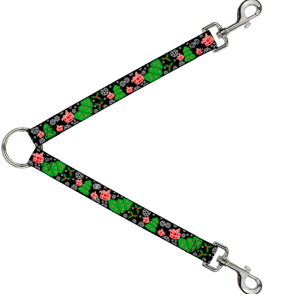 Dog Leash Splitter – Christmas Collage Black/White/Green/Red