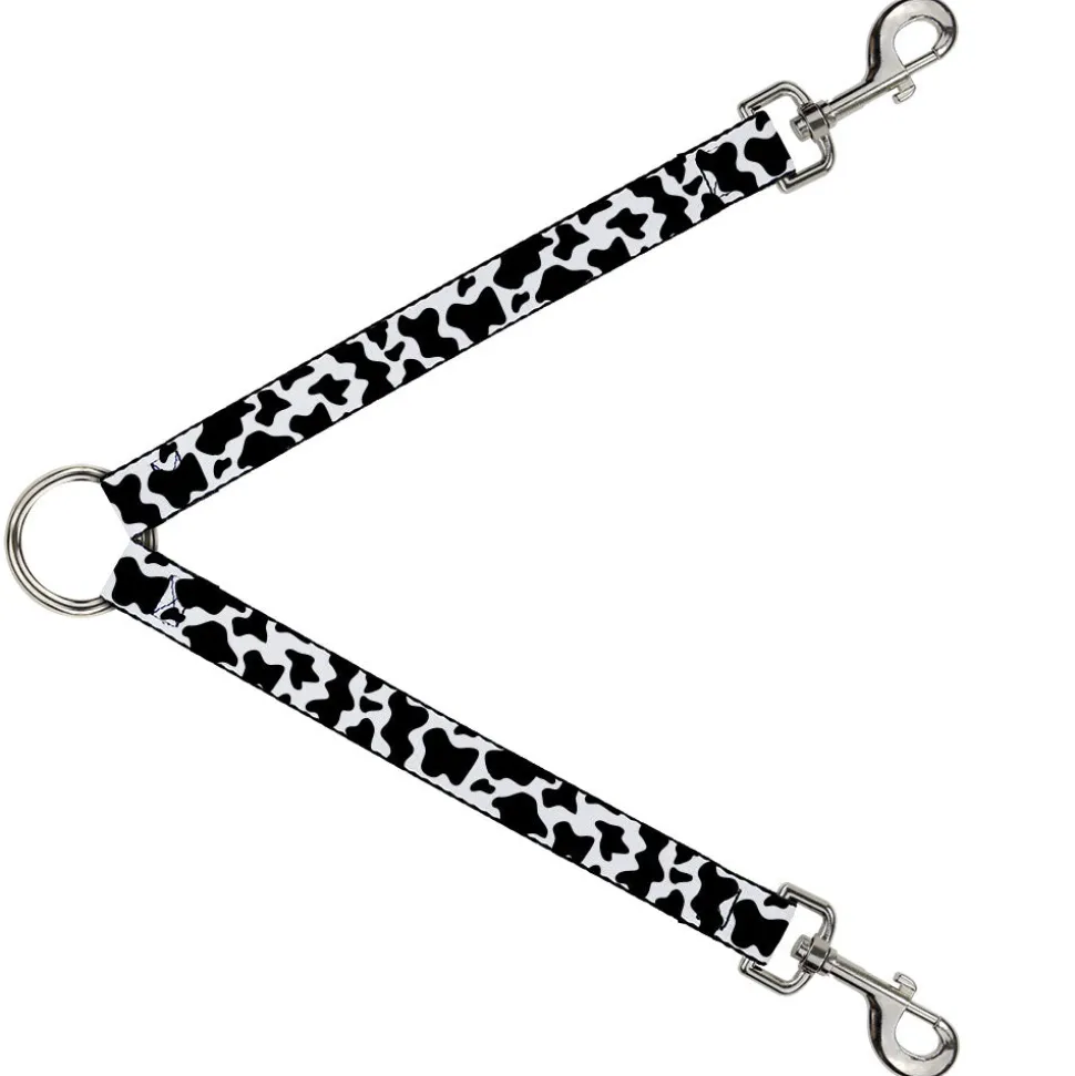 Dog Leash Splitter – Cow Pattern Print White/Black