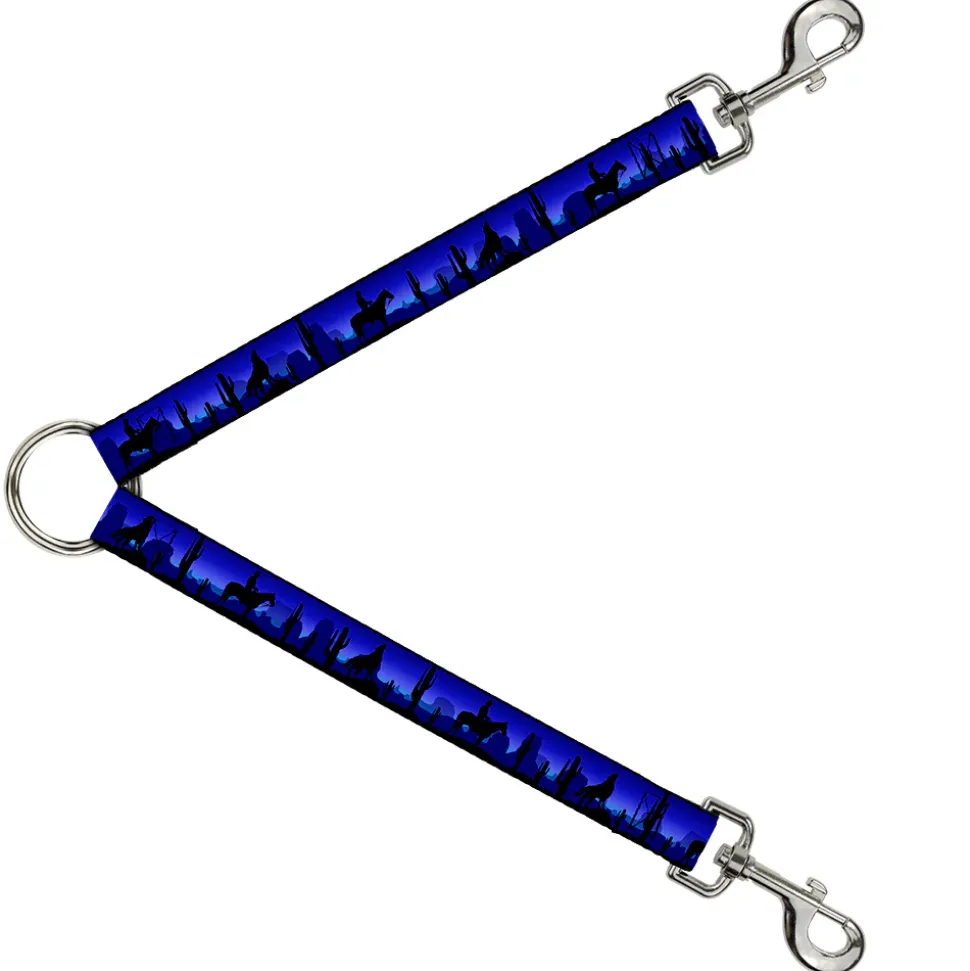 Dog Leash Splitter - Cowboy/Coyote Silhouettes/Western Landscape Blues/Black
