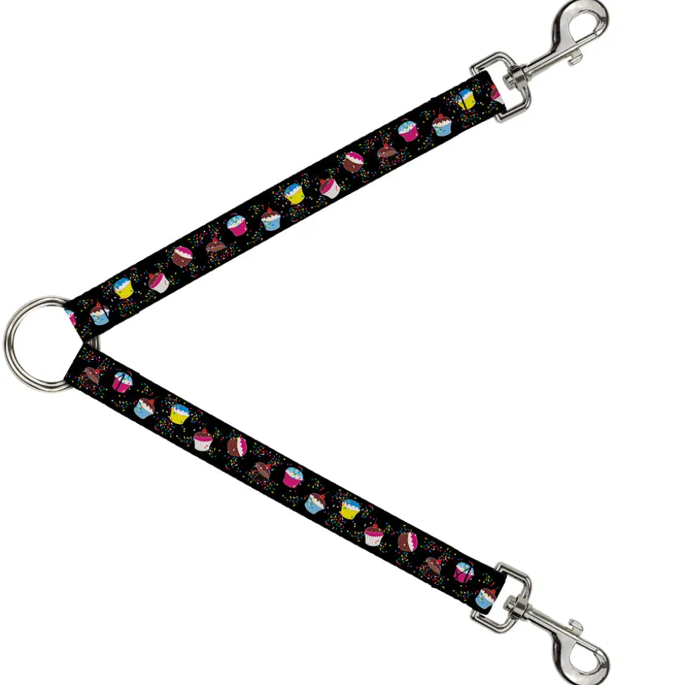 Dog Leash Splitter - Cupcake Sprinkles Black/Multi Color