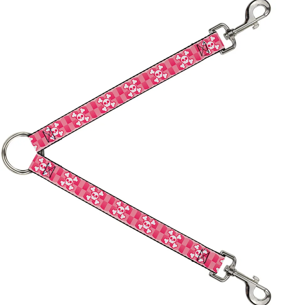Dog Leash Splitter – Cute Skulls w/Checkers Pinks/White