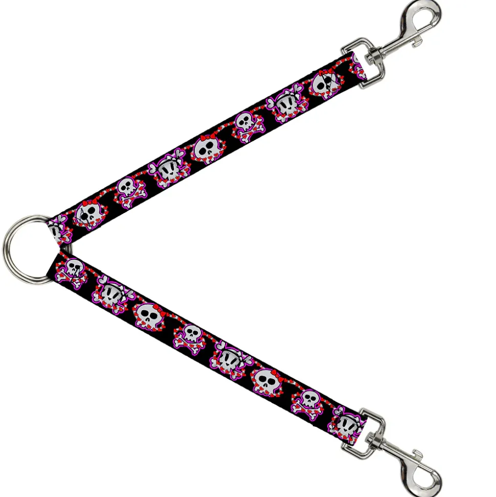 Dog Leash Splitter – Cute Skulls w/Hearts