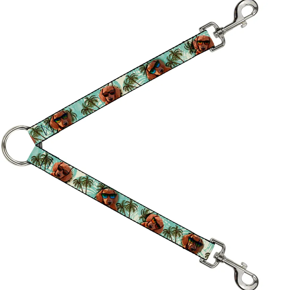 Dog Leash Splitter – Dachshund in Shades w/Palm Trees