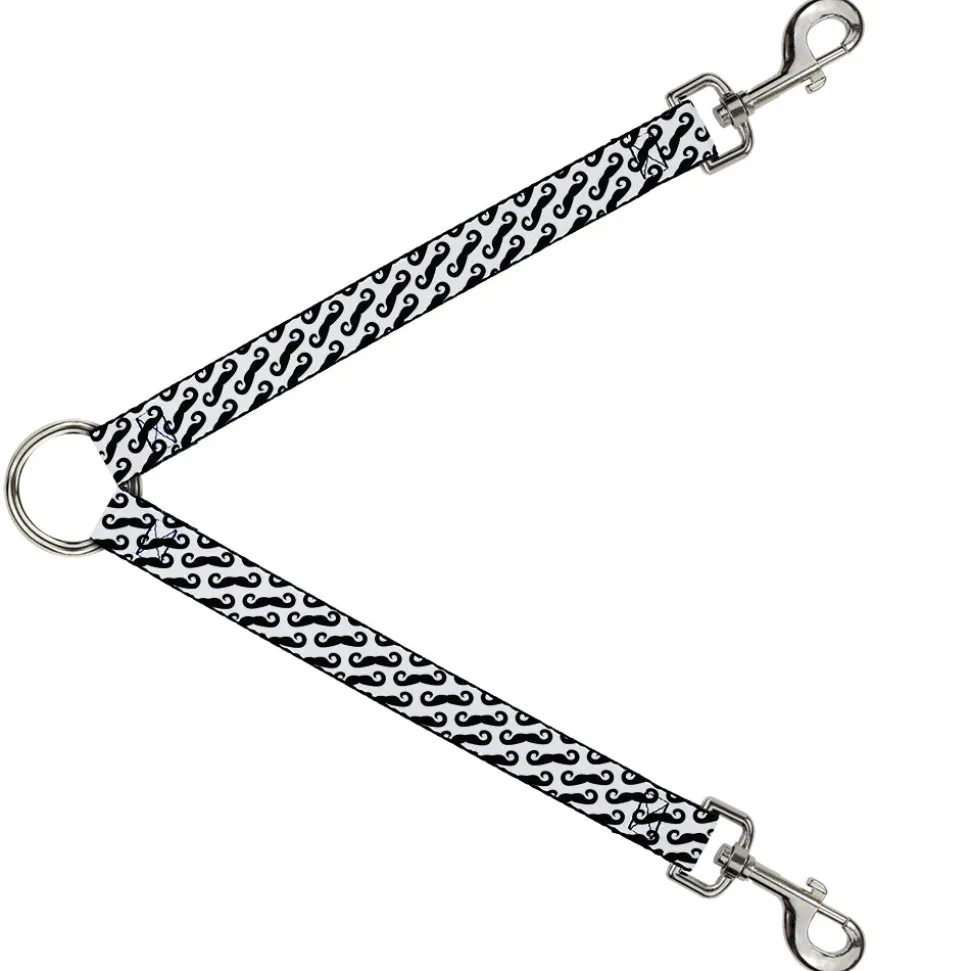 Dog Leash Splitter - Diagonal Handlebar Mustaches White/Black
