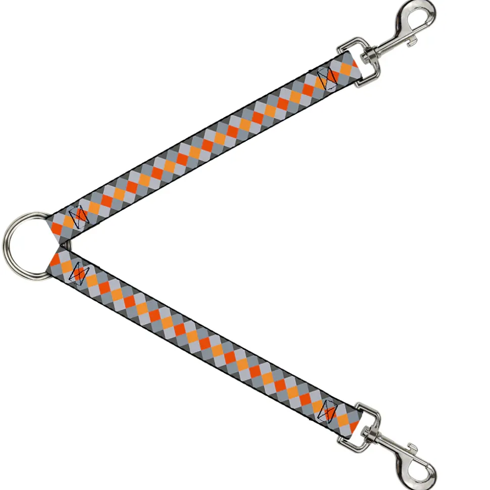 Dog Leash Splitter – Diamond Plaid Grays/Orange