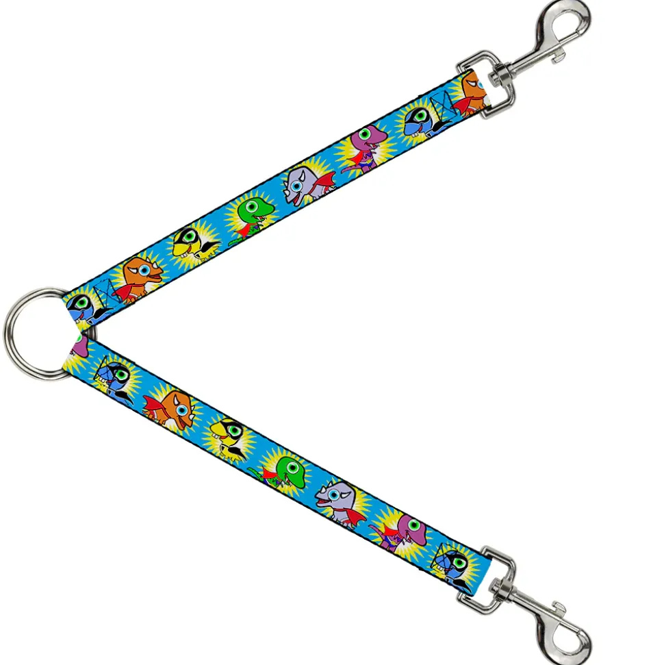 Dog Leash Splitter - Dinosaur Superhero Baby Blue