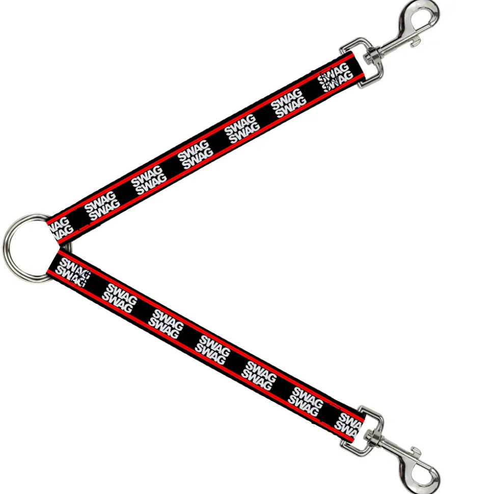 Dog Leash Splitter – Double SWAG Black/White/Red Stripe