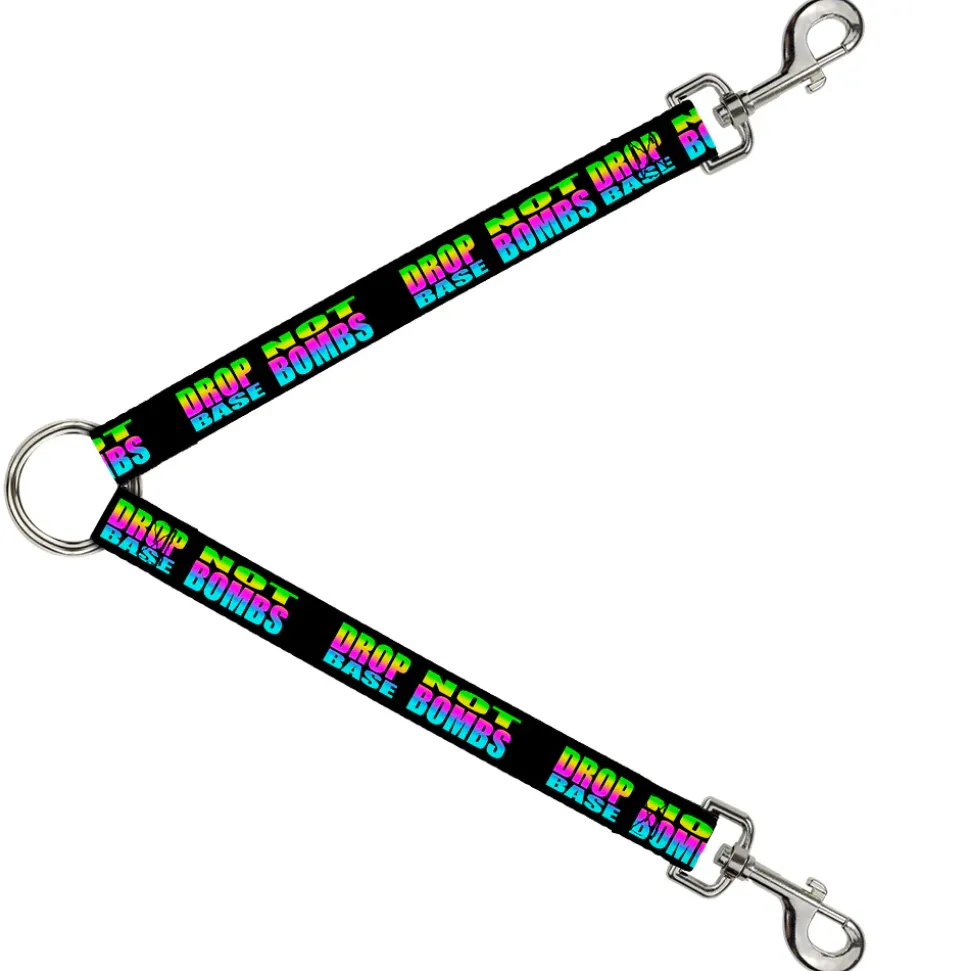 Dog Leash Splitter - DROP BASS NOT BOMBS Black/Rainbow