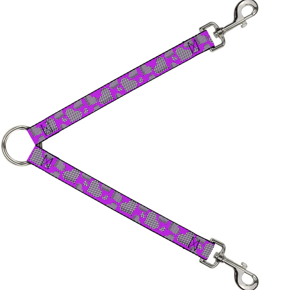 Dog Leash Splitter – Eighties Hearts Fuchsia/Black/White