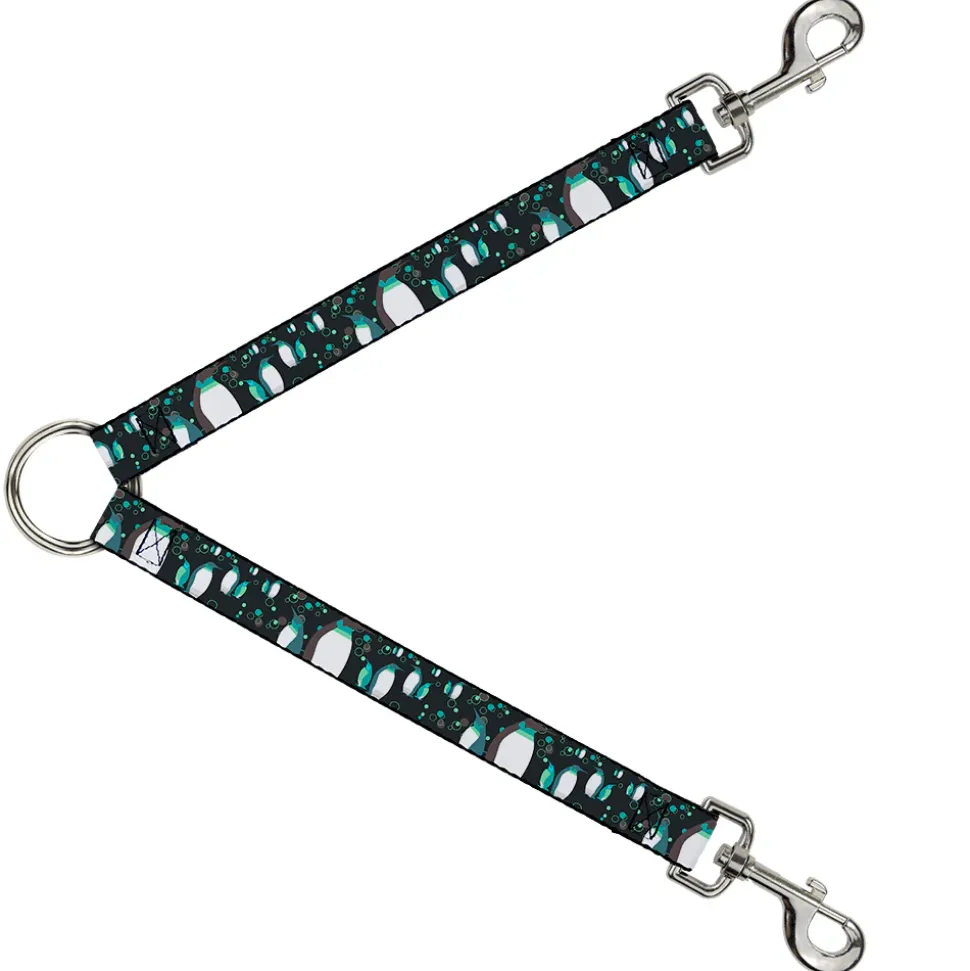 Dog Leash Splitter – Emperor Penguins w/Bubbles Black/Gray/Turqs