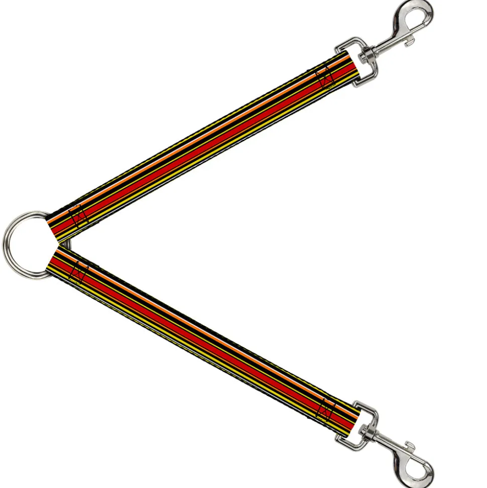 Dog Leash Splitter - Fine Stripes Black/Yellows/Orange/Red/White