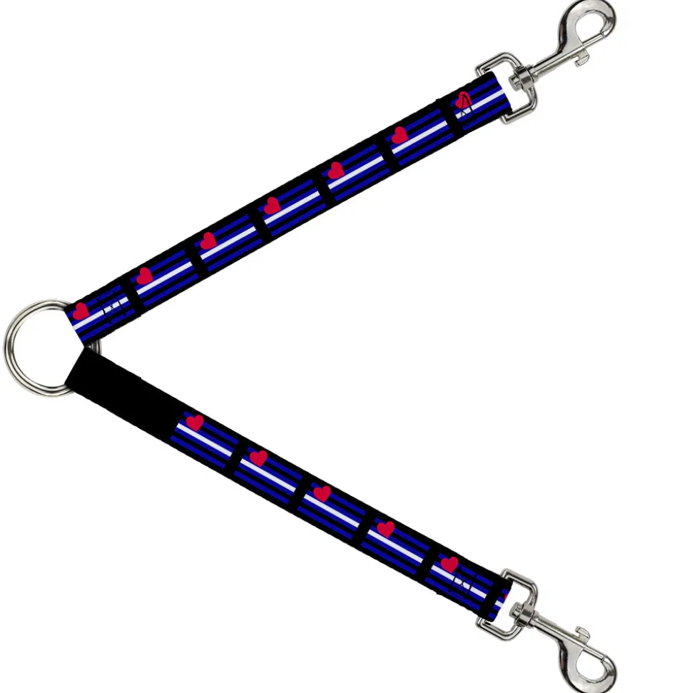 Dog Leash Splitter - Flag Leather Black/Blue/Red/White