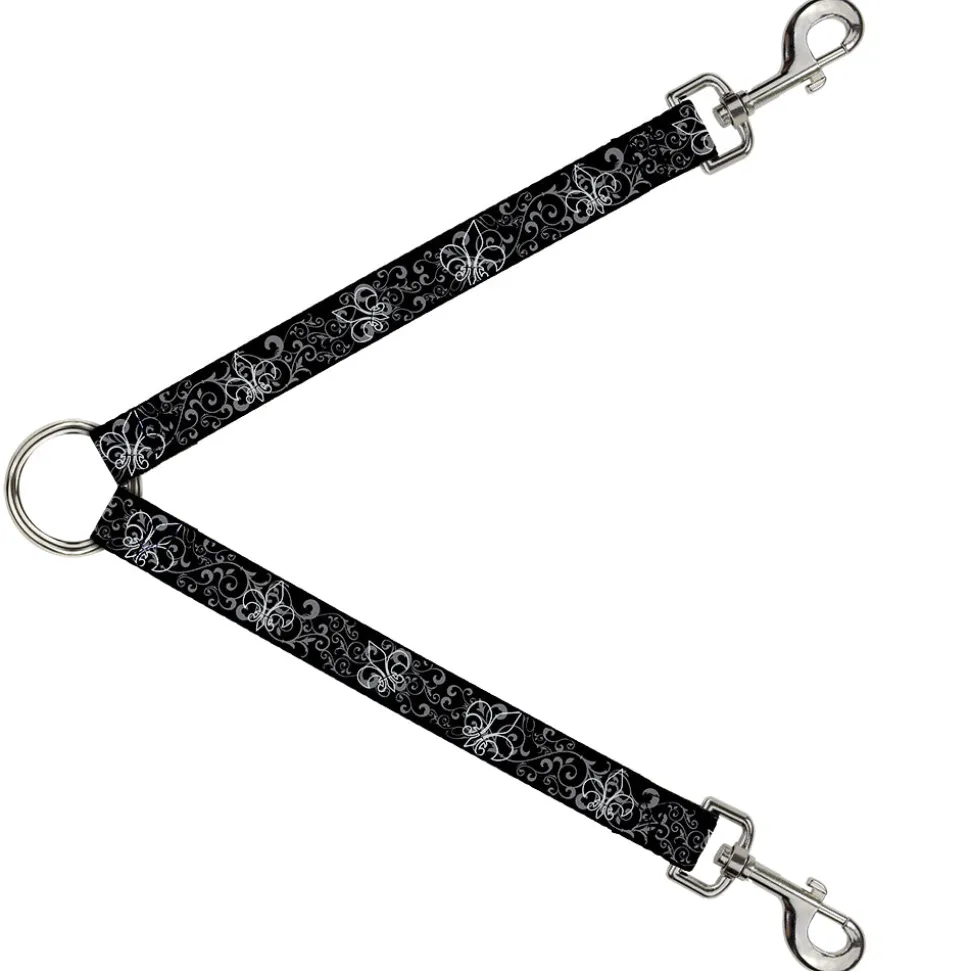 Dog Leash Splitter – Fleur-de-Lis Outline w/Filigree Black/Gray