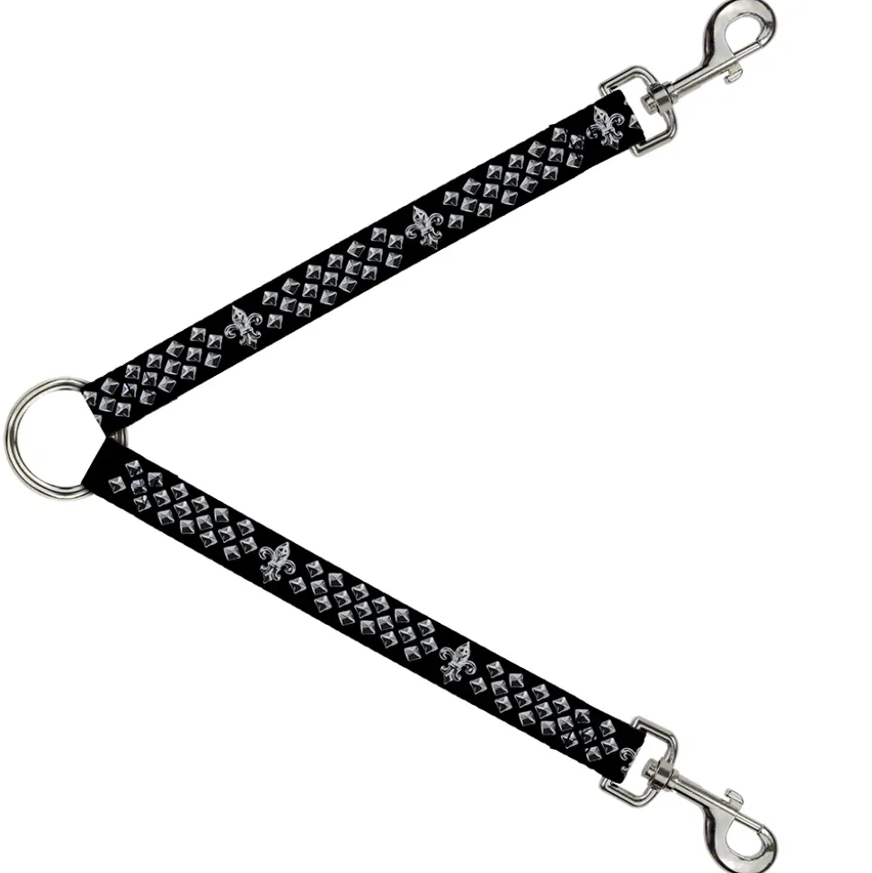 Dog Leash Splitter – Fleur-de-Lis/Studs Black/Grays