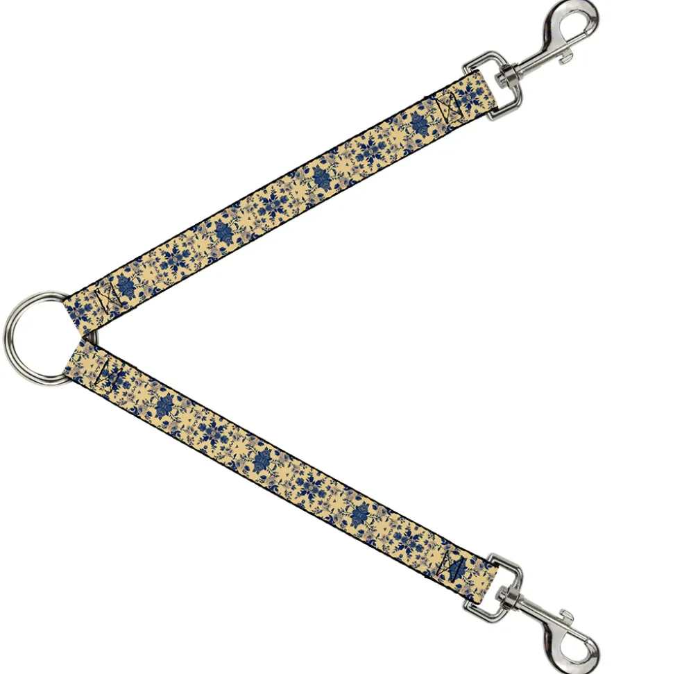 Dog Leash Splitter – Floral Collage Tan/Blue