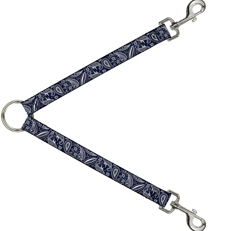 Dog Leash Splitter - Floral Paisley3 Blue/White/Gray