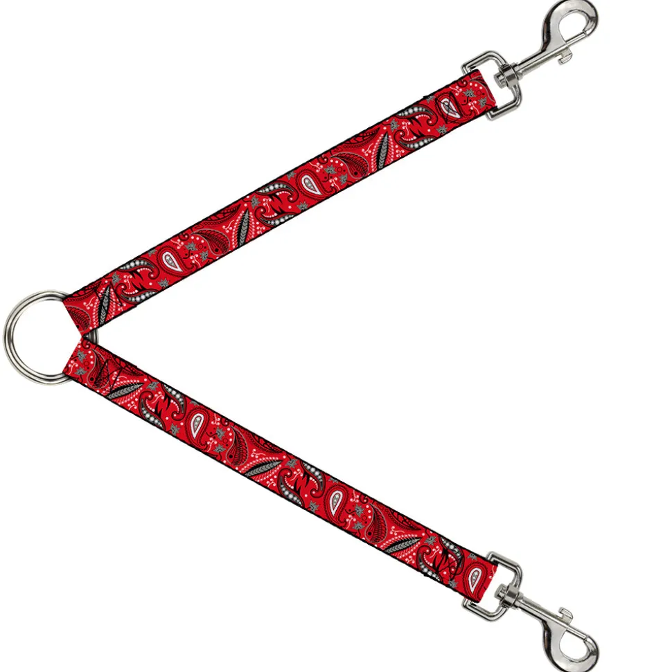 Dog Leash Splitter – Floral Paisley3 Red/Black/Gray/White