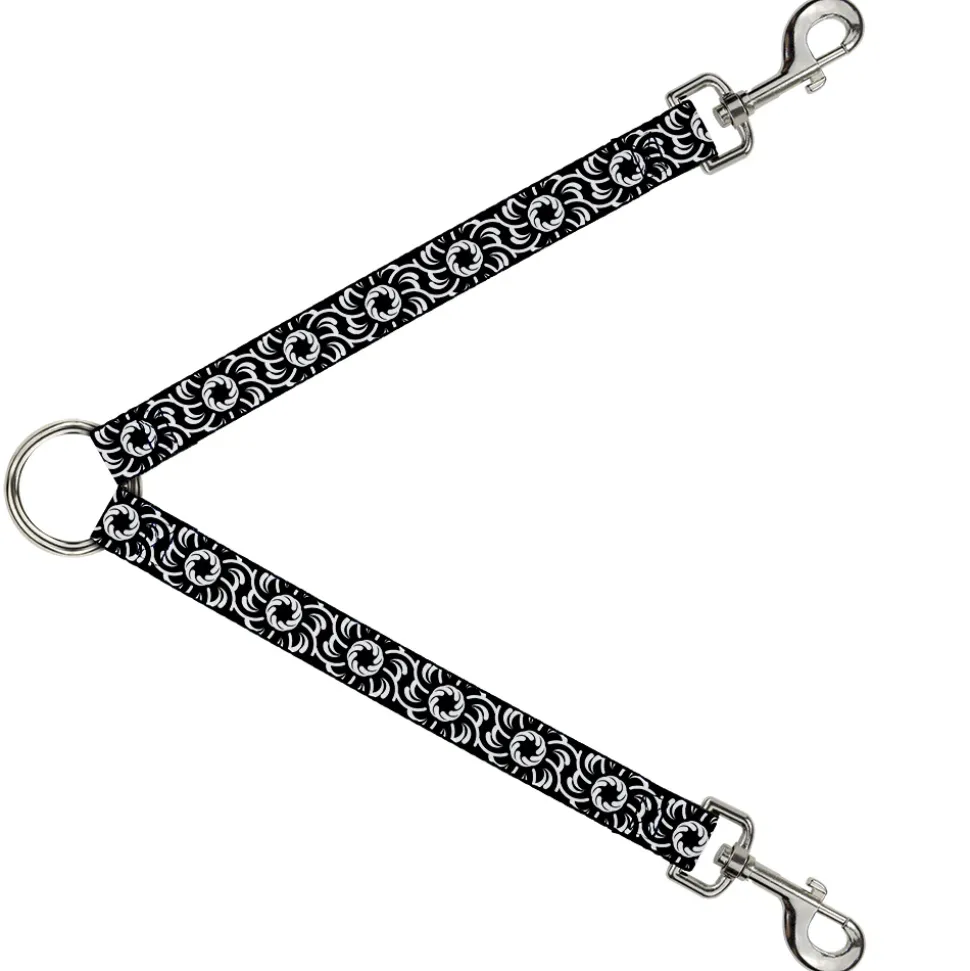 Dog Leash Splitter - Floral Pinwheel Black/White