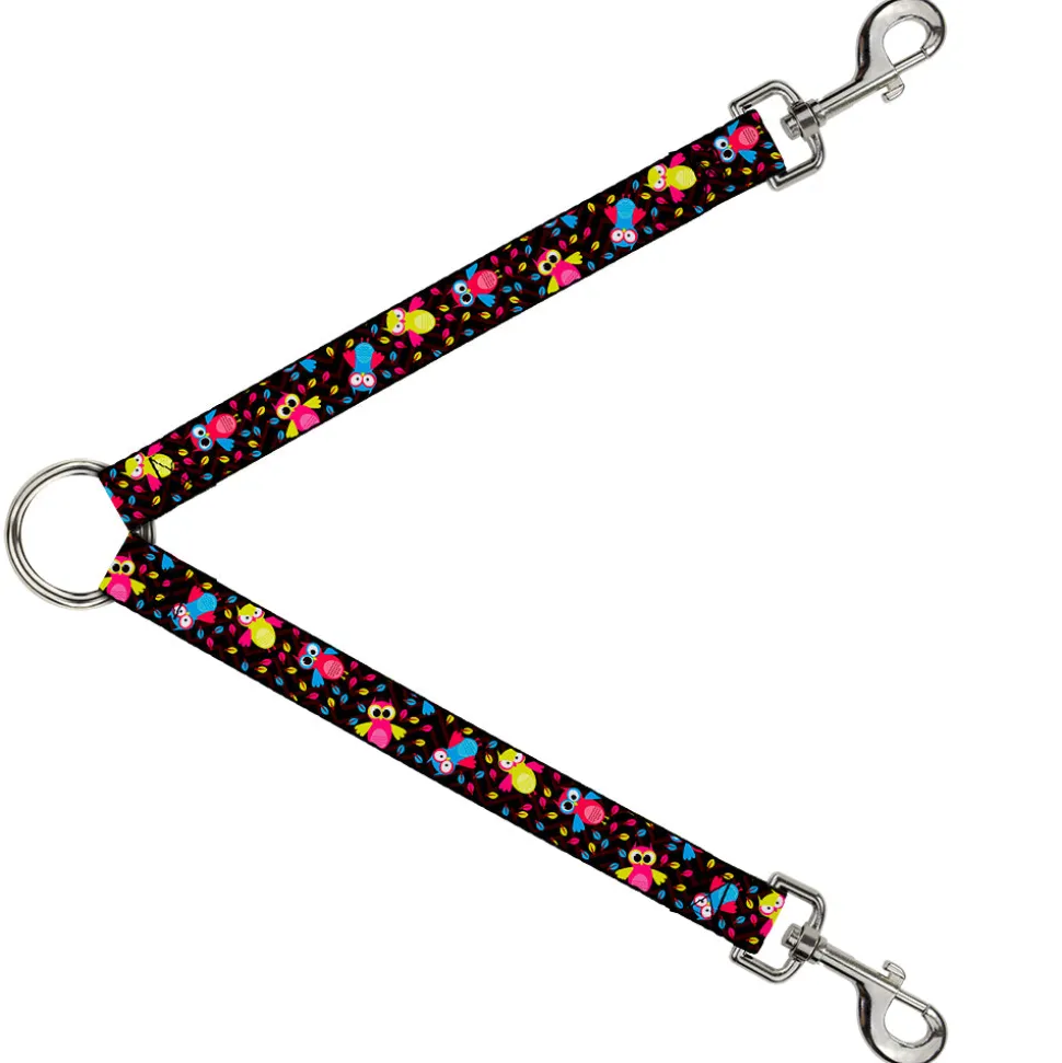 Dog Leash Splitter – Flying Owls w/Leaves Black/Multi Color